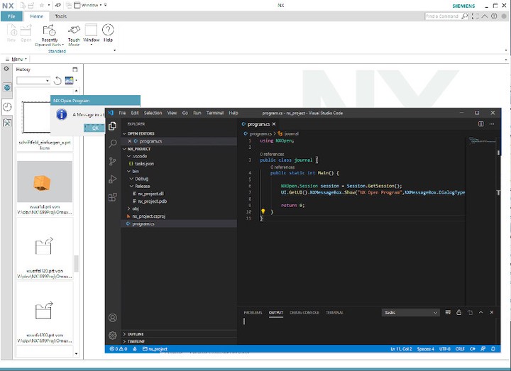 Üblicherweise werden NX Open-Applikationen in C# mit Microsofts Visual Studio erstellt. NX bringt Wizards zum bequemen Aufsetzen von entsprechenden Projekten mit. Wer jedoch nicht auf diese Entwicklungsumgebung zurückgreifen kann oder will, der hat mit dem quelloffenen VS Code (Visual Studio Code) eine gute Alternative.